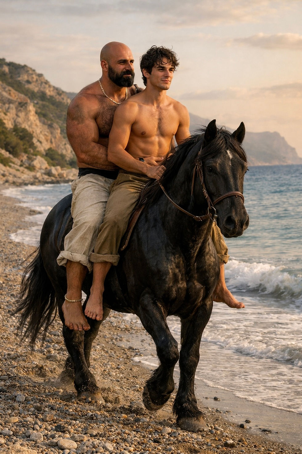 The sound of its engine swallowed the rhythm of the hooves. The wind, which moments ago had smelled of salt, now reeked of oil and hot metal. I felt Giorgio change behind me. Not visible, but there in the tension of his hands. His warmth remained, yet it was no longer only protection. It was readiness.